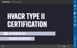 Did you know HVACandRefrigeration technicians who maintain, service, repair, or dispose of medium, high, and very high pressure appliances containing more than five pounds of a controlled refrigerant must pass the EPA’s Section 608 Type II certification exam? Type II certification requires that technicians understand several topics related to these systems, including leak detection, leak repair, evacuation requirements, recovery techniques, refrigeration, and safety. This interactive online course will cover the appliances included in the EPA Section 608 Type II certification exam, explain the techniques that are used to recover refrigerants, list evacuation requirements, and cover safety considerations for working with or around refrigerants, recovery equipment, and HVAC andRefrigeration systems